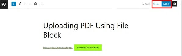 After that, you can see how your PDF file will appear in your post by selecting the "Preview" option. The last step is to click the "Publish" button to put it online.