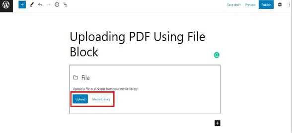The best method is to add a PDF to your WordPress post using a File block. It's one of the simplest methods to upload PDFs without installing the additional plugin.