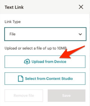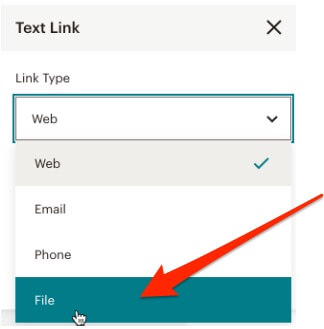 Text Linkmodal box will show up. Click theFileoption from the dropdown menu:
